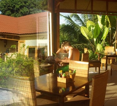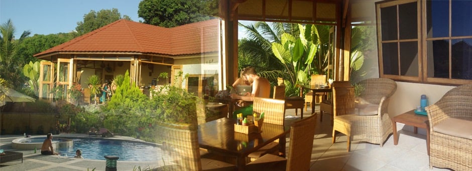 The reception area is built in West-Flores architectural style and serves breakfast in the morning and drinks can be ordered during the day.